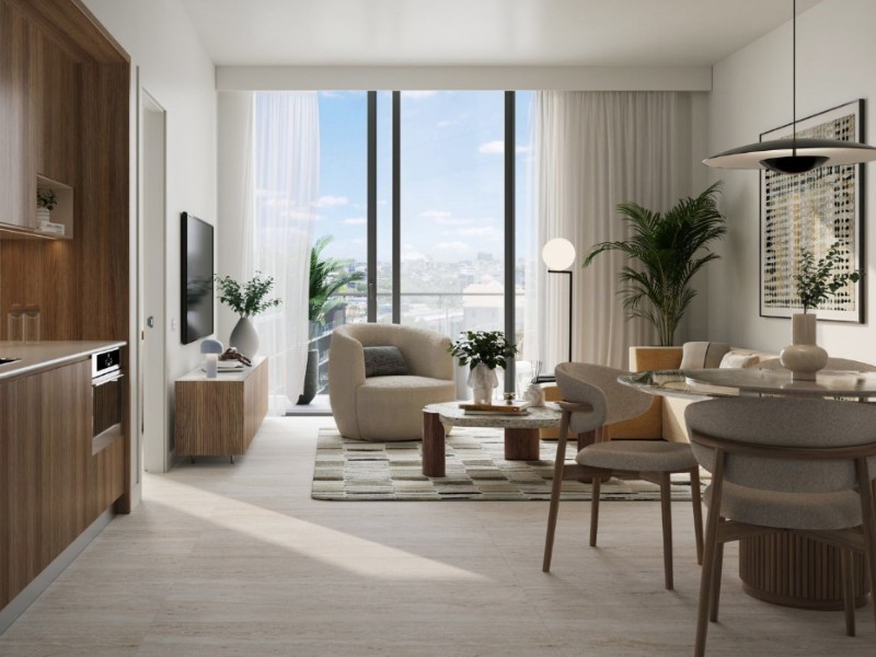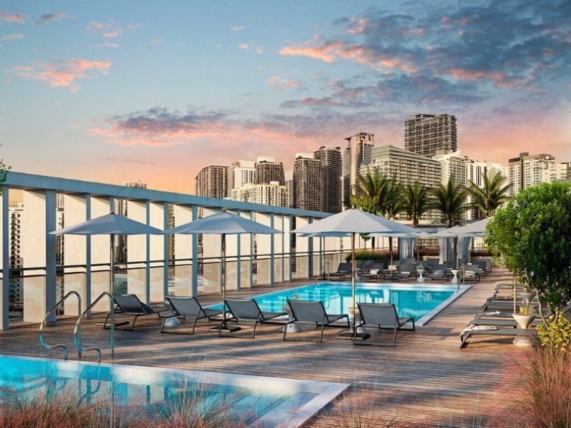 171 pisos completamente amueblados, desde estudios hasta dos habitaciones, ofrecen techos altos de más de 9 pies y balcones privados. Con un lobby de doble altura y altavoces de sonido envolvente, este desarrollo también incluye un amplio espacio de coworking y es amigable con las mascotas.