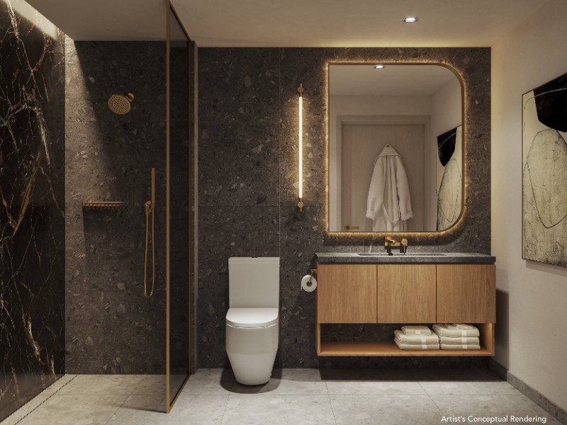 Baños inspirados en los spas, con suelos y paredes con acabados personalizados, duchas de cristal sin marco y detalles refinados.