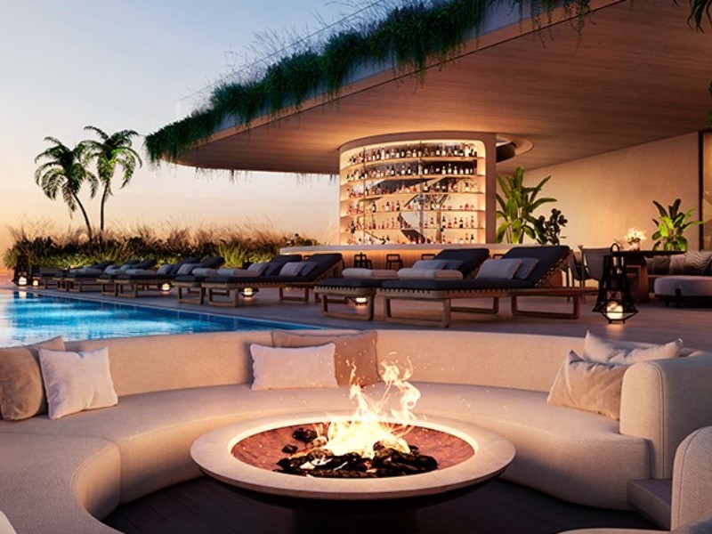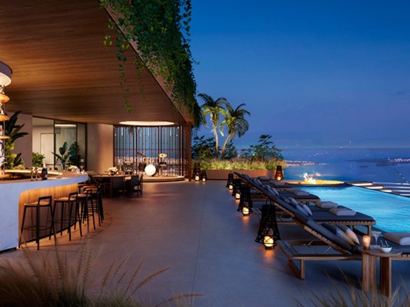 Impresionante azotea con amenidades con características lujosas estilo resort, tales como una refrescante piscina, un exquisito salón y bar en el cielo, una encantadora cocina de exhibición, así como exclusivos espacios privados para eventos.