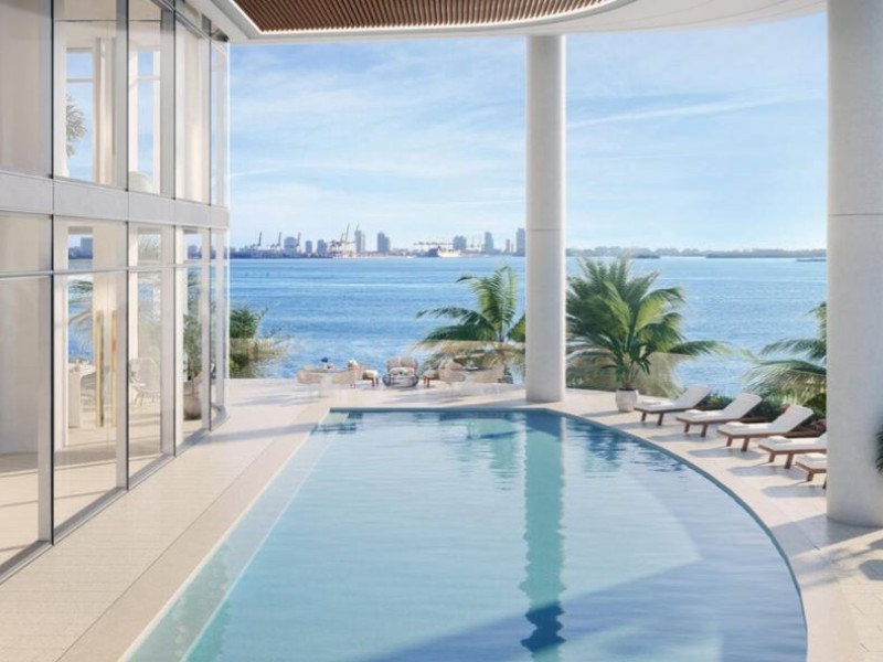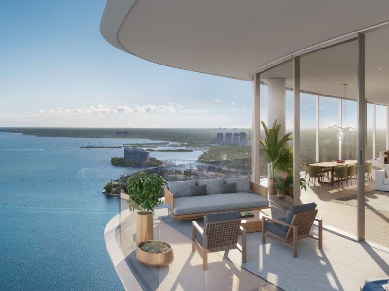 Las áreas de estar se ubican frente al agua, lo que maximiza las asombrosas vistas de la bahía de estos nuevos condominios de Brickell.